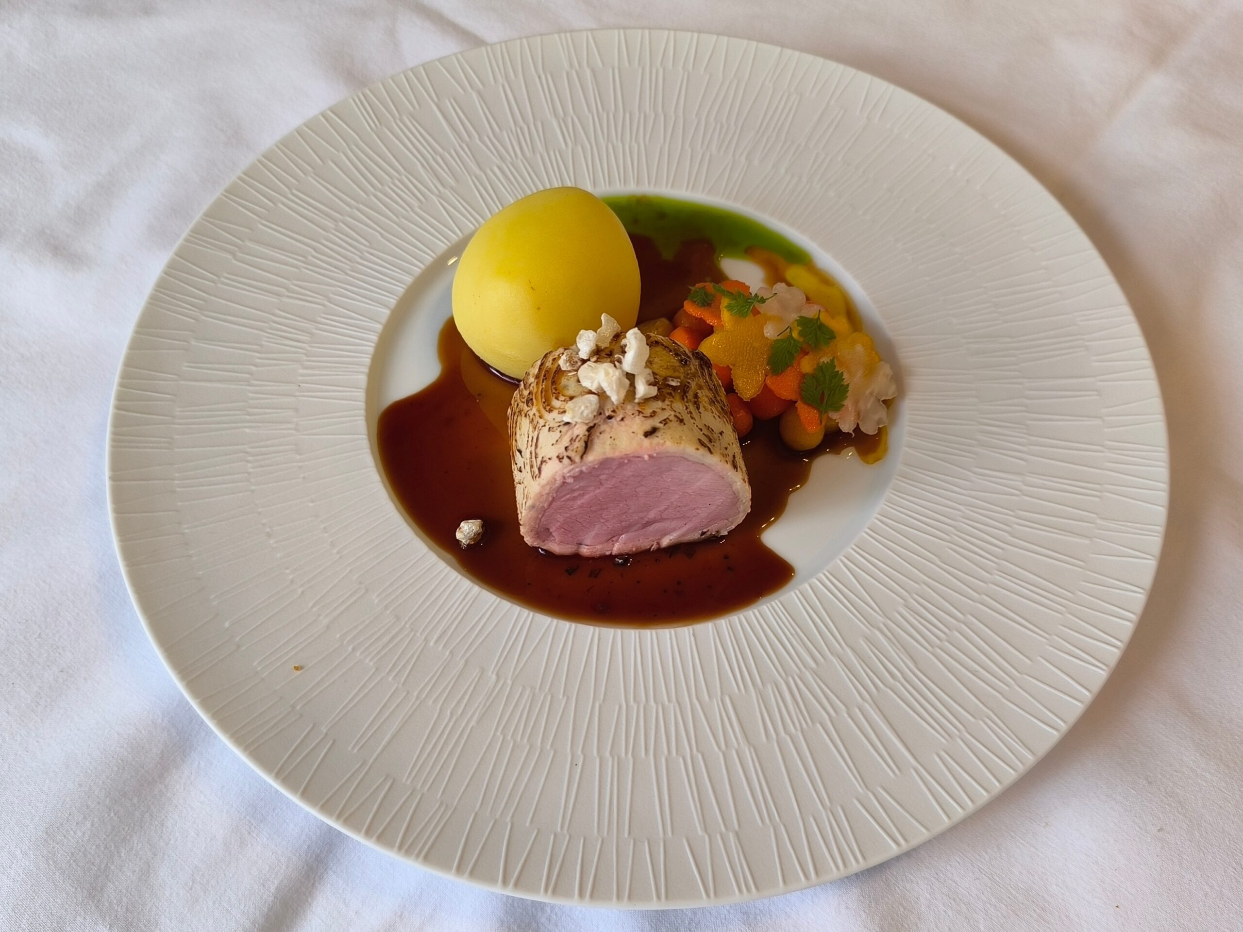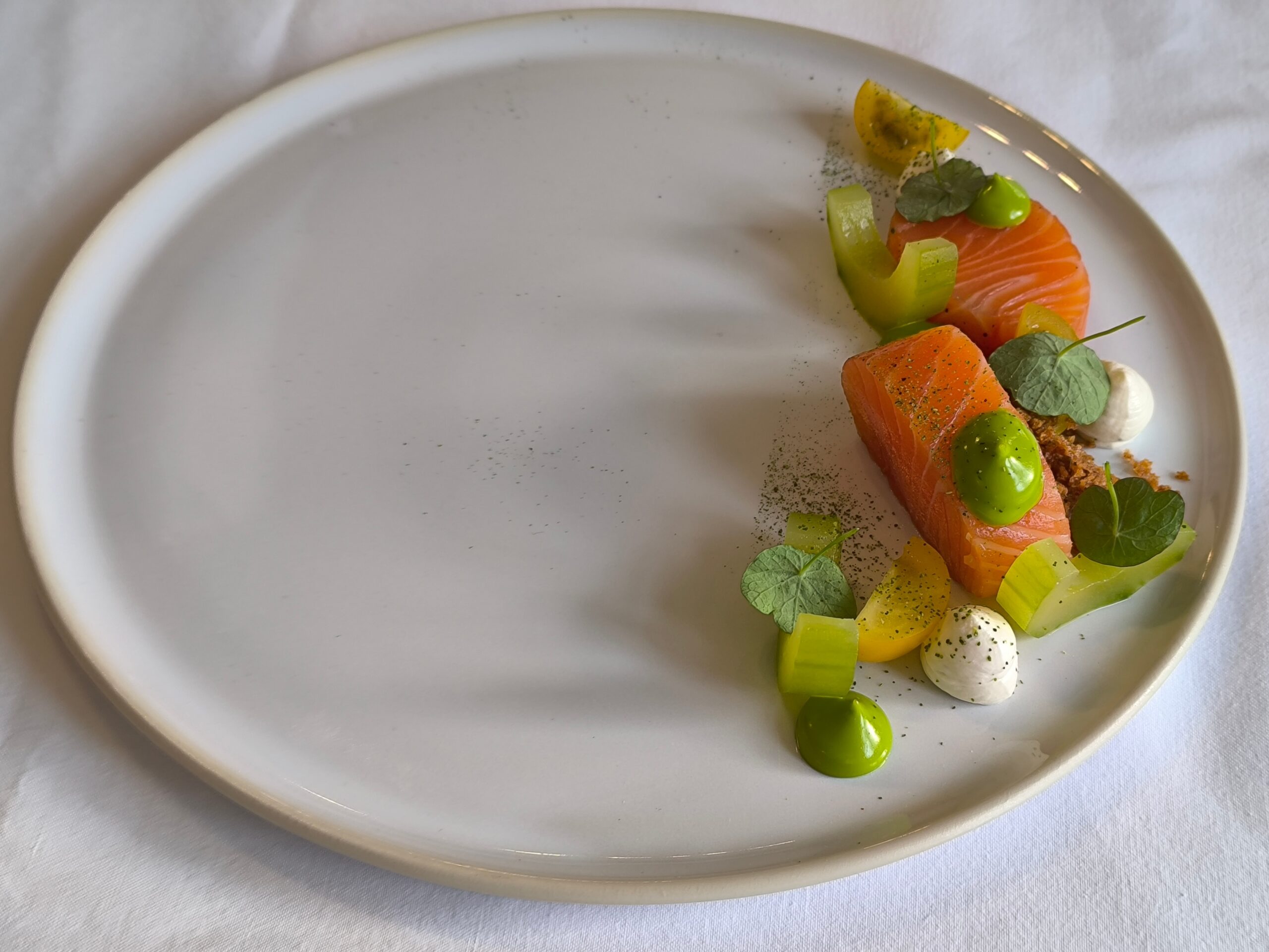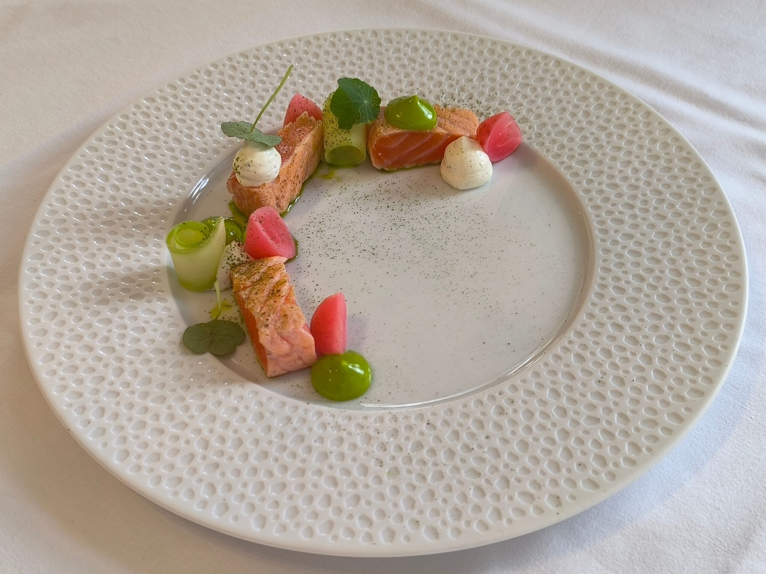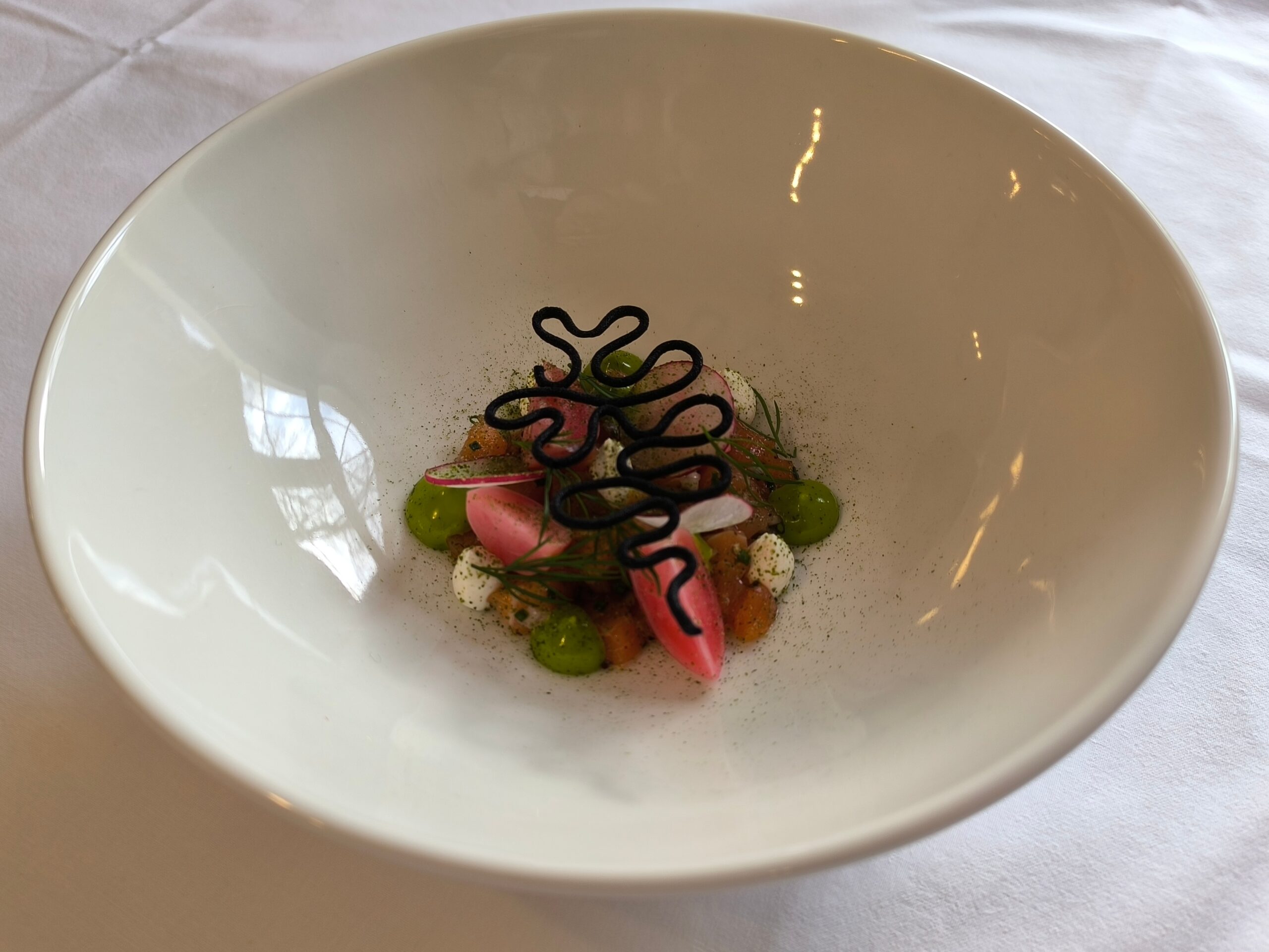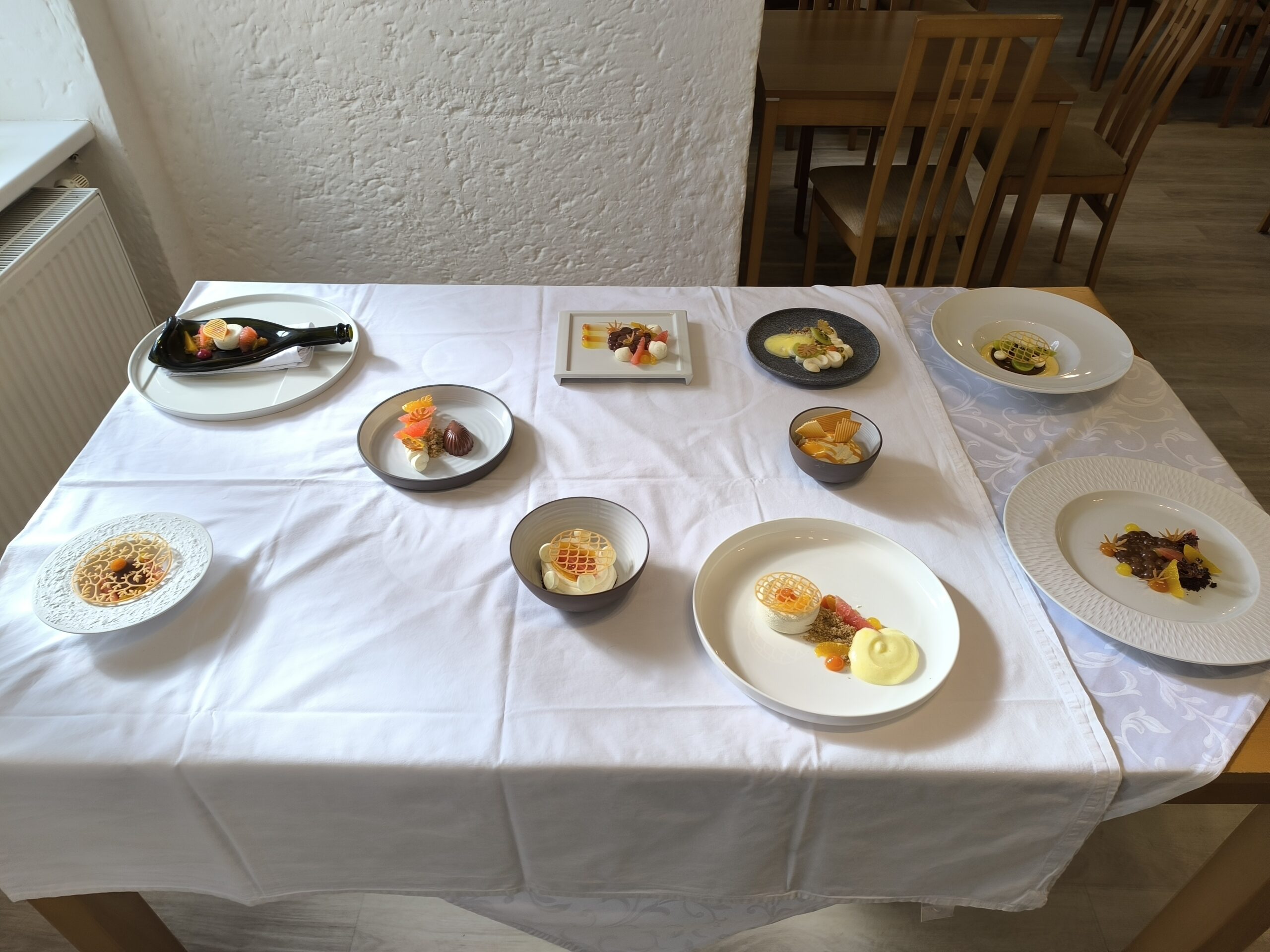 Důraz byl kladen na detail, čistotu práce a respekt k surovinám. Jak zdůraznil sám šéfkuchař, kvalitní plating začíná už při samotné přípravě každé složky pokrmu.