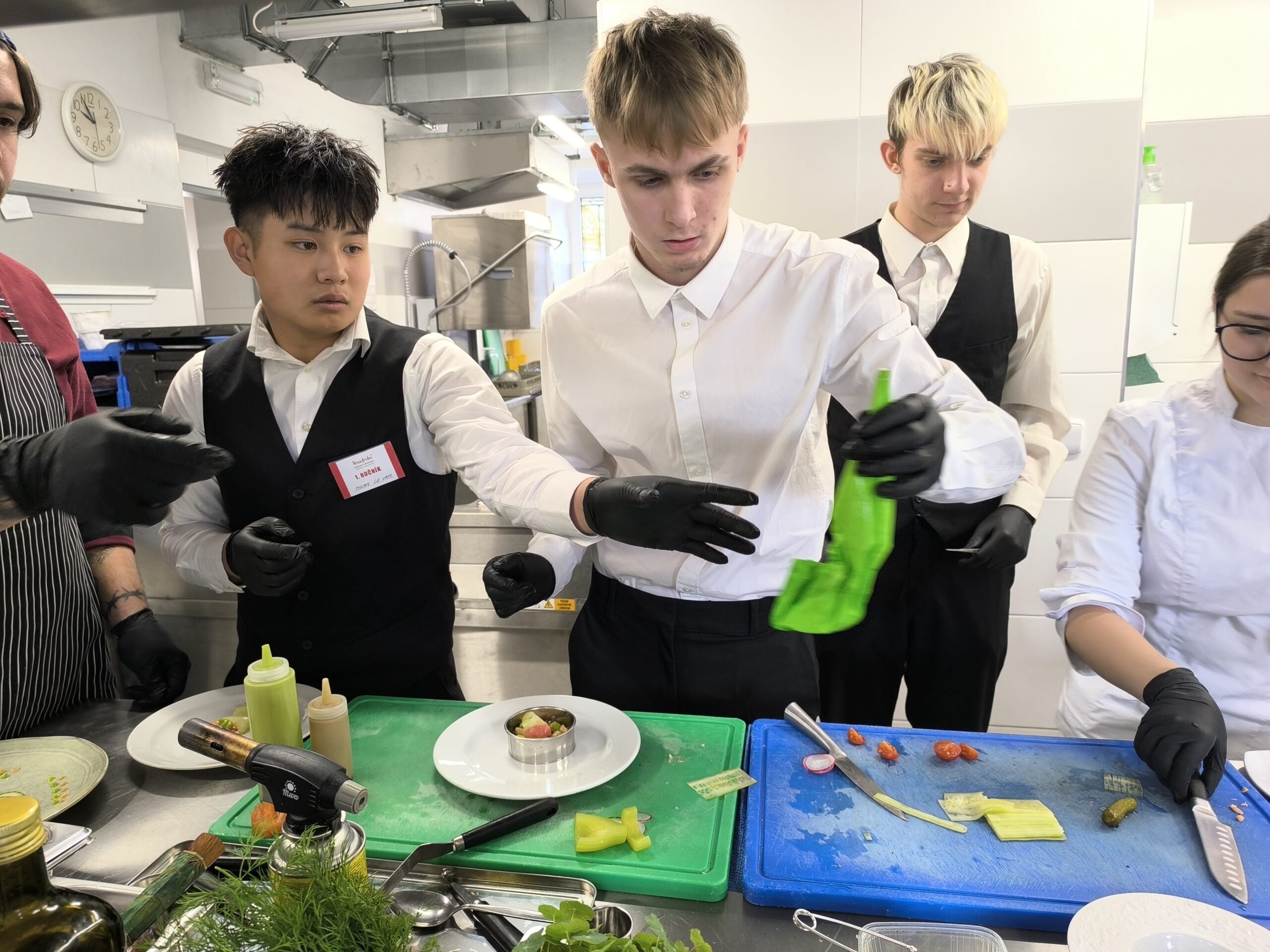 Úvodní den byl věnován důkladné přípravě jednotlivých komponentů pokrmů. Žáci pracovali s různými druhy masa, zeleninou i sladkými prvky, které tvoří důležitou součást moderní gastronomie.