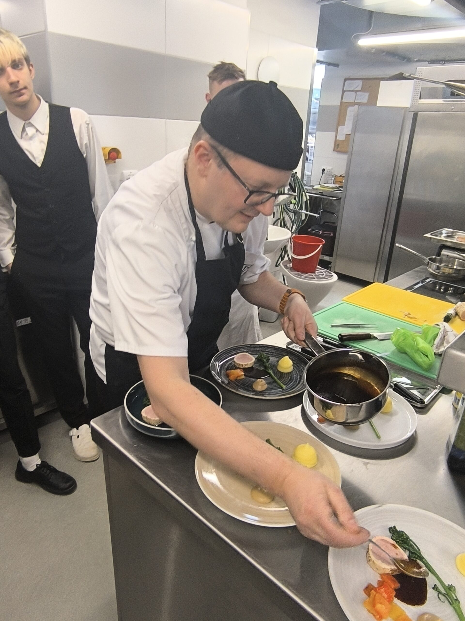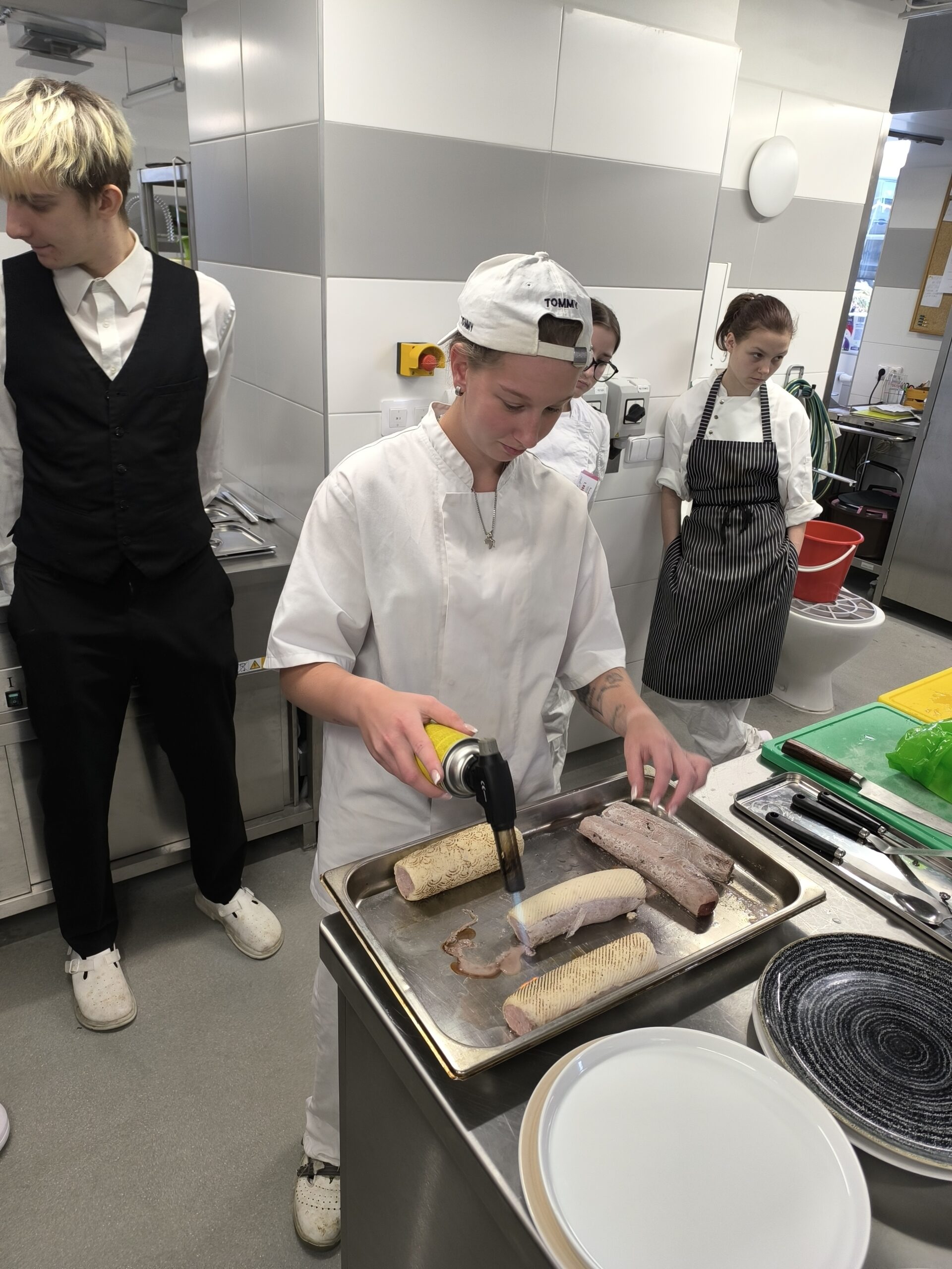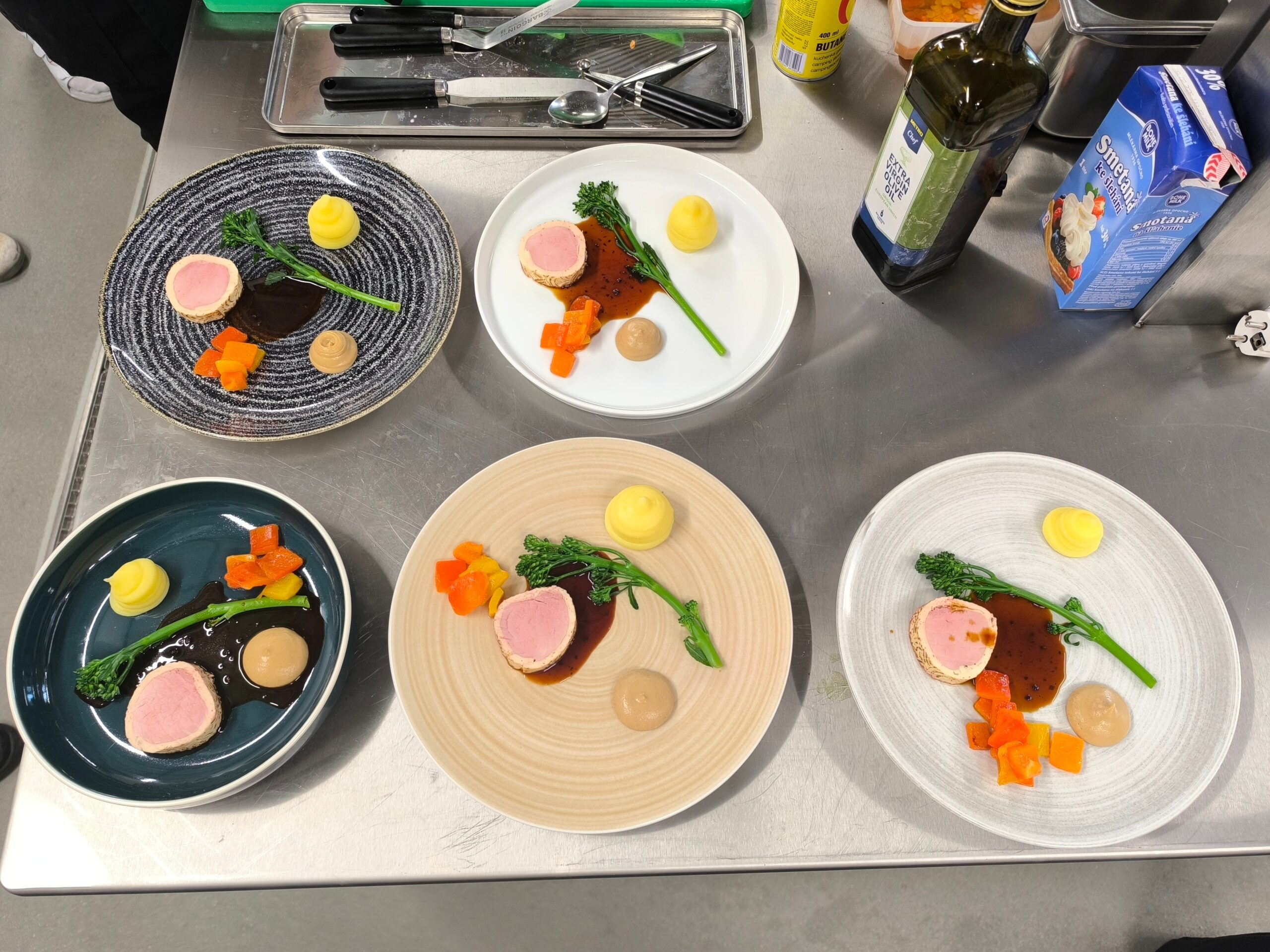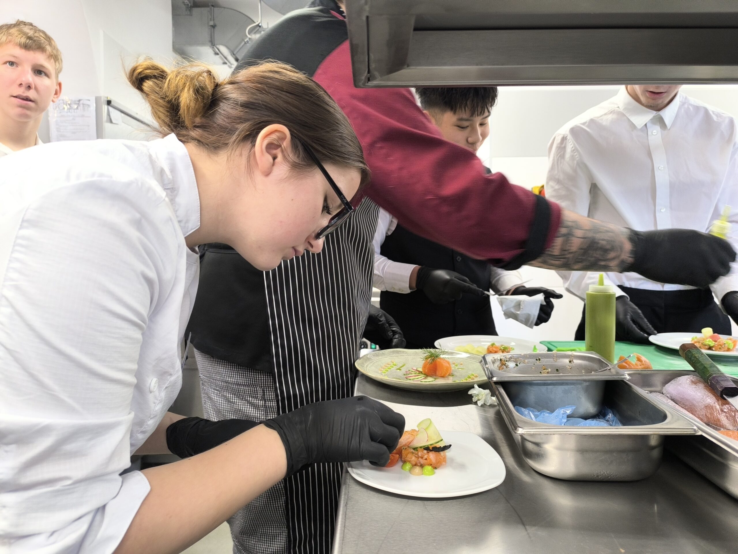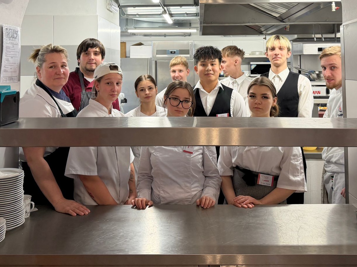Po ukázkách si studenti vše vyzkoušeli na vlastních talířích. Pod odborným dohledem experimentovali s rozmístěním jednotlivých prvků, učili se pracovat s výškou, kontrasty i čistotou prezentace. Bylo zřejmé, že tato zkušenost pro ně byla nejen cennou lekcí, ale také velkou inspirací do budoucí praxe.