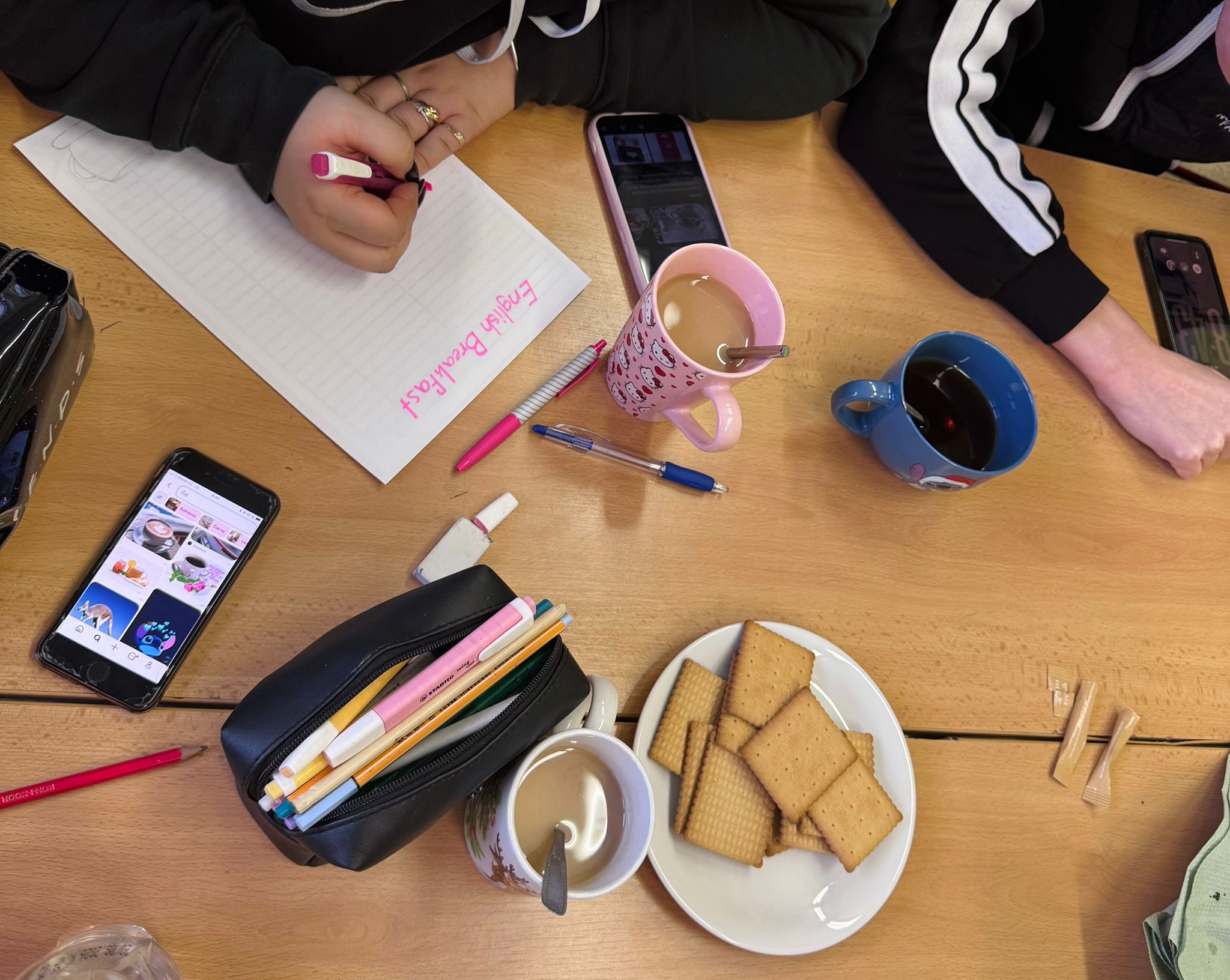 Žáci 1. ročníku oboru kadeřník/vizážista si v hodině angličtiny vyzkoušeli projektovou výuku trochu jinak – proměnili jsme třídu v malou Británii a uspořádali tradiční „čaj o páté“.